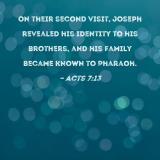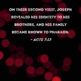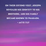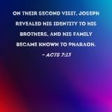 On their second visit, Joseph revealed his identity to his brothers, and his family became known to Pharaoh.
