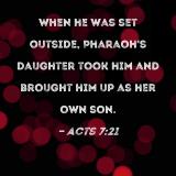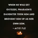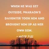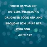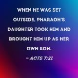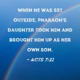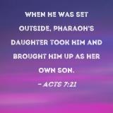 When he was set outside, Pharaoh's daughter took him and brought him up as her own son.