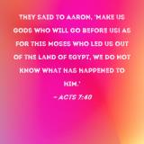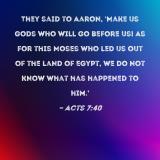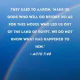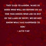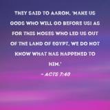 They said to Aaron, 'Make us gods who will go before us! As for this Moses who led us out of the land of Egypt, we do not know what has happened to him.'