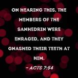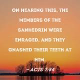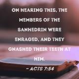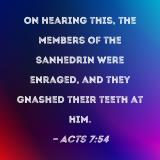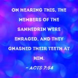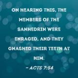On hearing this, the members of the Sanhedrin were enraged, and they gnashed their teeth at him.