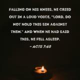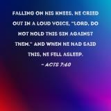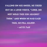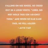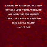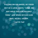 Falling on his knees, he cried out in a loud voice, "Lord, do not hold this sin against them." And when he had said this, he fell asleep.