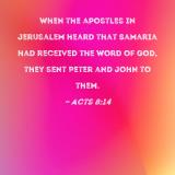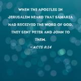 When the apostles in Jerusalem heard that Samaria had received the word of God, they sent Peter and John to them.