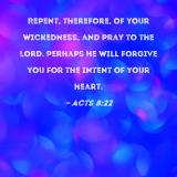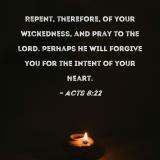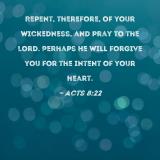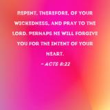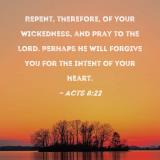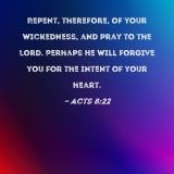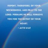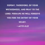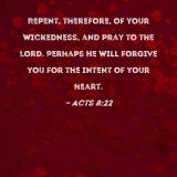 Repent, therefore, of your wickedness, and pray to the Lord. Perhaps He will forgive you for the intent of your heart.