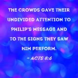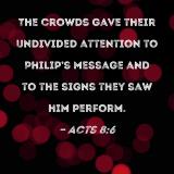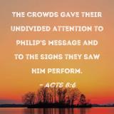 The crowds gave their undivided attention to Philip's message and to the signs they saw him perform.