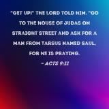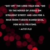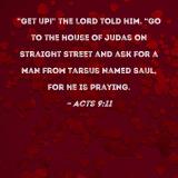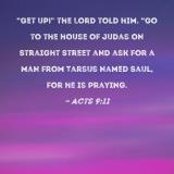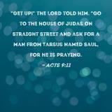 "Get up!" the Lord told him. "Go to the house of Judas on Straight Street and ask for a man from Tarsus named Saul, for he is praying.