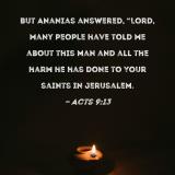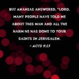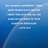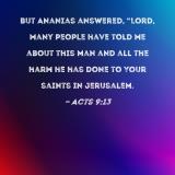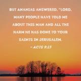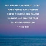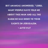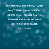 But Ananias answered, "Lord, many people have told me about this man and all the harm he has done to Your saints in Jerusalem.