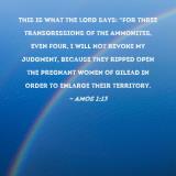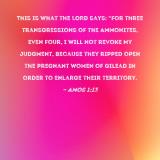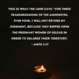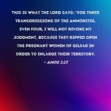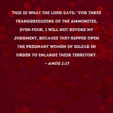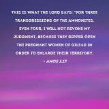 This is what the LORD says: "For three transgressions of the Ammonites, even four, I will not revoke My judgment, because they ripped open the pregnant women of Gilead in order to enlarge their territory.