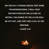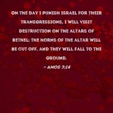 On the day I punish Israel for their transgressions, I will visit destruction on the altars of Bethel; the horns of the altar will be cut off, and they will fall to the ground.