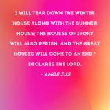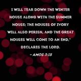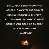 I will tear down the winter house along with the summer house; the houses of ivory will also perish, and the great houses will come to an end," declares the LORD.