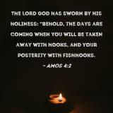 The Lord GOD has sworn by His holiness: "Behold, the days are coming when you will be taken away with hooks, and your posterity with fishhooks.