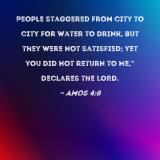 People staggered from city to city for water to drink, but they were not satisfied; yet you did not return to Me," declares the LORD.