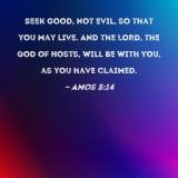 Seek good, not evil, so that you may live. And the LORD, the God of Hosts, will be with you, as you have claimed.