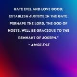 Hate evil and love good; establish justice in the gate. Perhaps the LORD, the God of Hosts, will be gracious to the remnant of Joseph."