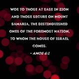 Woe to those at ease in Zion and those secure on Mount Samaria, the distinguished ones of the foremost nation, to whom the house of Israel comes.