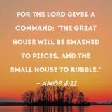 For the LORD gives a command: "The great house will be smashed to pieces, and the small house to rubble."