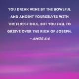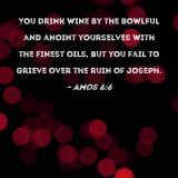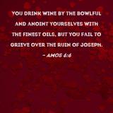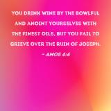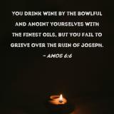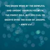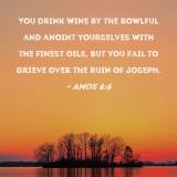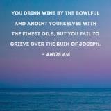 You drink wine by the bowlful and anoint yourselves with the finest oils, but you fail to grieve over the ruin of Joseph.