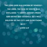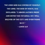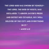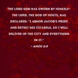 The Lord GOD has sworn by Himself--the LORD, the God of Hosts, has declared: "I abhor Jacob's pride and detest his citadels, so I will deliver up the city and everything in it."