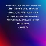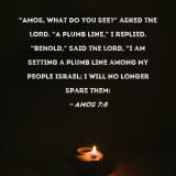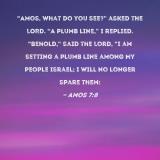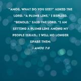 "Amos, what do you see?" asked the LORD. "A plumb line," I replied. "Behold," said the Lord, "I am setting a plumb line among My people Israel; I will no longer spare them: