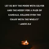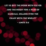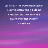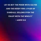 Let us buy the poor with silver and the needy for a pair of sandals, selling even the chaff with the wheat!"