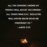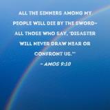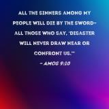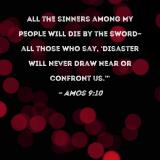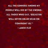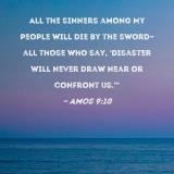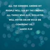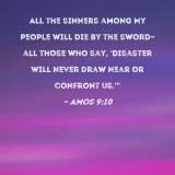 All the sinners among My people will die by the sword--all those who say, 'Disaster will never draw near or confront us.'"