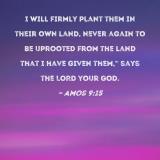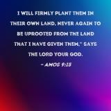 I will firmly plant them in their own land, never again to be uprooted from the land that I have given them," says the LORD your God.