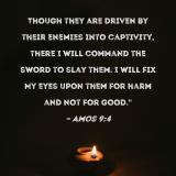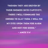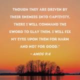 Though they are driven by their enemies into captivity, there I will command the sword to slay them. I will fix My eyes upon them for harm and not for good."