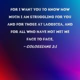 For I want you to know how much I am struggling for you and for those at Laodicea, and for all who have not met me face to face,
