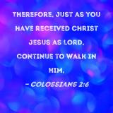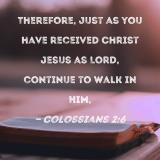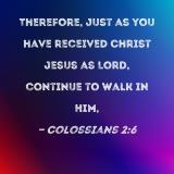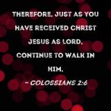 Therefore, just as you have received Christ Jesus as Lord, continue to walk in Him,