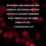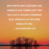Bear with one another and forgive any complaint you may have against someone else. Forgive as the Lord forgave you.