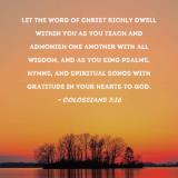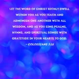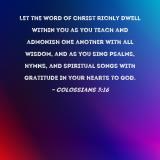 Let the word of Christ richly dwell within you as you teach and admonish one another with all wisdom, and as you sing psalms, hymns, and spiritual songs with gratitude in your hearts to God.