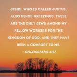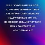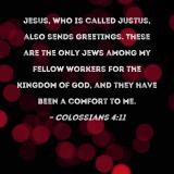 Jesus, who is called Justus, also sends greetings. These are the only Jews among my fellow workers for the kingdom of God, and they have been a comfort to me.