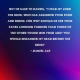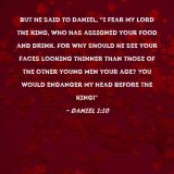 but he said to Daniel, "I fear my lord the king, who has assigned your food and drink. For why should he see your faces looking thinner than those of the other young men your age? You would endanger my head before the king!"