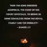 Then the king ordered Ashpenaz, the chief of his court officials, to bring in some Israelites from the royal family and the nobility--