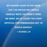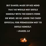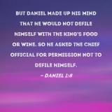 But Daniel made up his mind that he would not defile himself with the king's food or wine. So he asked the chief official for permission not to defile himself.