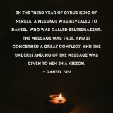 In the third year of Cyrus king of Persia, a message was revealed to Daniel, who was called Belteshazzar. The message was true, and it concerned a great conflict. And the understanding of the message was given to him in a vision.