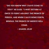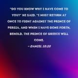 "Do you know why I have come to you?" he said. "I must return at once to fight against the prince of Persia, and when I have gone forth, behold, the prince of Greece will come.