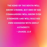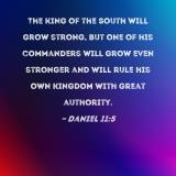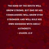 The king of the South will grow strong, but one of his commanders will grow even stronger and will rule his own kingdom with great authority.