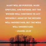 Many will be purified, made spotless, and refined, but the wicked will continue to act wickedly. None of the wicked will understand, but the wise will understand.