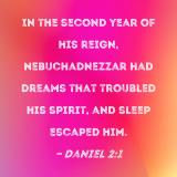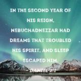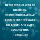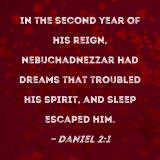 In the second year of his reign, Nebuchadnezzar had dreams that troubled his spirit, and sleep escaped him.