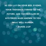 As you lay on your bed, O king, your thoughts turned to the future, and the Revealer of Mysteries made known to you what will happen.