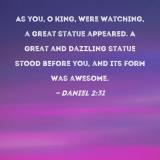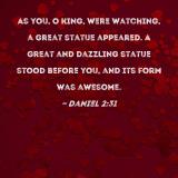 As you, O king, were watching, a great statue appeared. A great and dazzling statue stood before you, and its form was awesome.