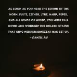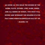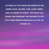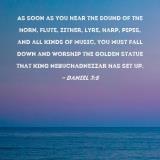 As soon as you hear the sound of the horn, flute, zither, lyre, harp, pipes, and all kinds of music, you must fall down and worship the golden statue that King Nebuchadnezzar has set up.