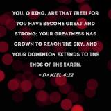 you, O king, are that tree! For you have become great and strong; your greatness has grown to reach the sky, and your dominion extends to the ends of the earth.