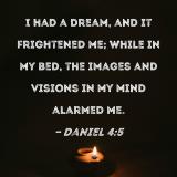 I had a dream, and it frightened me; while in my bed, the images and visions in my mind alarmed me.