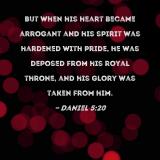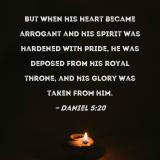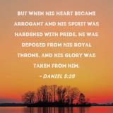 But when his heart became arrogant and his spirit was hardened with pride, he was deposed from his royal throne, and his glory was taken from him.