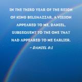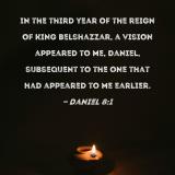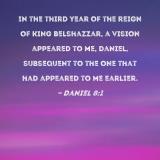 In the third year of the reign of King Belshazzar, a vision appeared to me, Daniel, subsequent to the one that had appeared to me earlier.