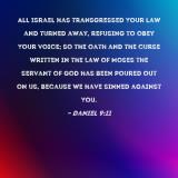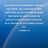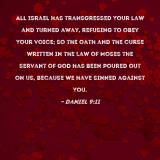 All Israel has transgressed Your law and turned away, refusing to obey Your voice; so the oath and the curse written in the Law of Moses the servant of God has been poured out on us, because we have sinned against You.