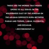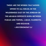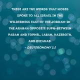 These are the words that Moses spoke to all Israel in the wilderness east of the Jordan--in the Arabah opposite Suph--between Paran and Tophel, Laban, Hazeroth, and Dizahab.