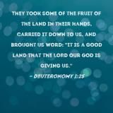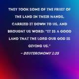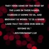 They took some of the fruit of the land in their hands, carried it down to us, and brought us word: "It is a good land that the LORD our God is giving us."
