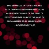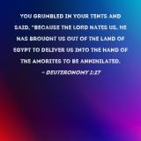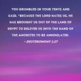 You grumbled in your tents and said, "Because the LORD hates us, He has brought us out of the land of Egypt to deliver us into the hand of the Amorites to be annihilated.